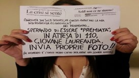 L’ultima stronza (perdonatemi la volgarità) che si è guadagnata un posto al sole e un pizzico di notorietà è una presunta aspirante laureanda da 110 che non sapendo come comprarsi un motorino nuovo e avendo probabilmente poca voglia di rimboccarsi le maniche ha preferito spogliarsi del tutto e offrire foto hard in cambio ovviamente di soldi. Vero o falso che sia il profilo facebook che ha creato, di fatto ha subito ottenuto il risultato di far parlare giornali e televisioni di questa sua attività imprenditoriale che, sono certo, in futuro ad espandere la sua creatività oltrepassando il confine virtuale per una più terra terra ma redditizia tradizionale attività.